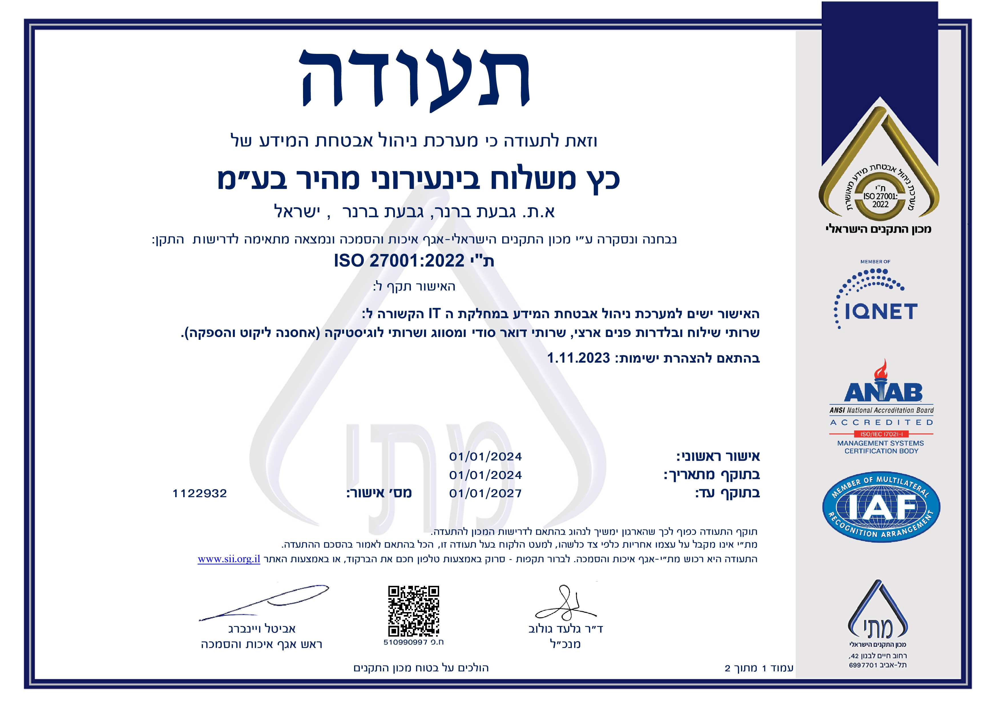 פרטים אישיים שתמסור יישמרו במערכות מאובטחות, ישמשו למתן שירות ויצירת קשר, ולא יועברו לצדדים שלישיים אלא אם נדרש על פי חוק.