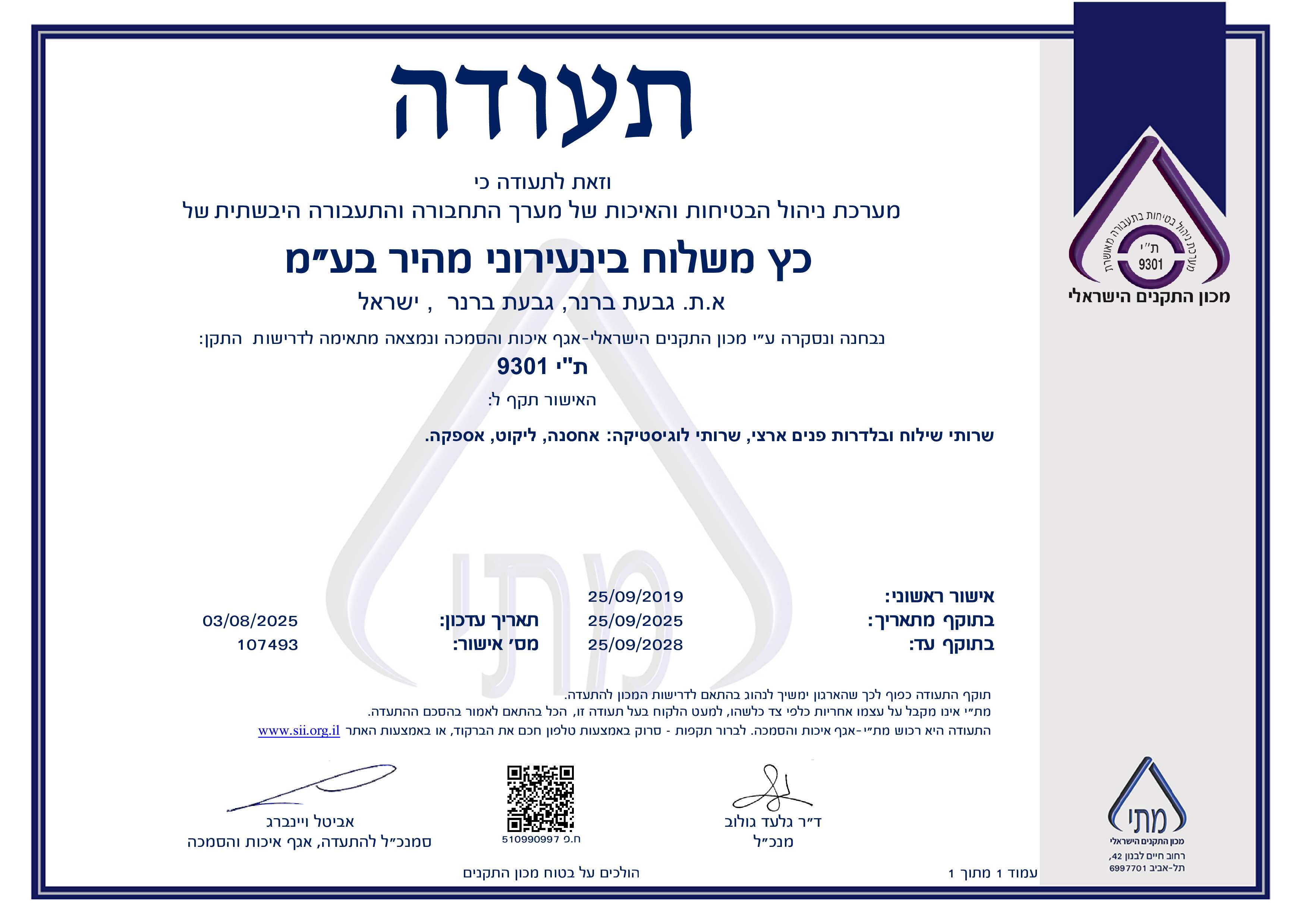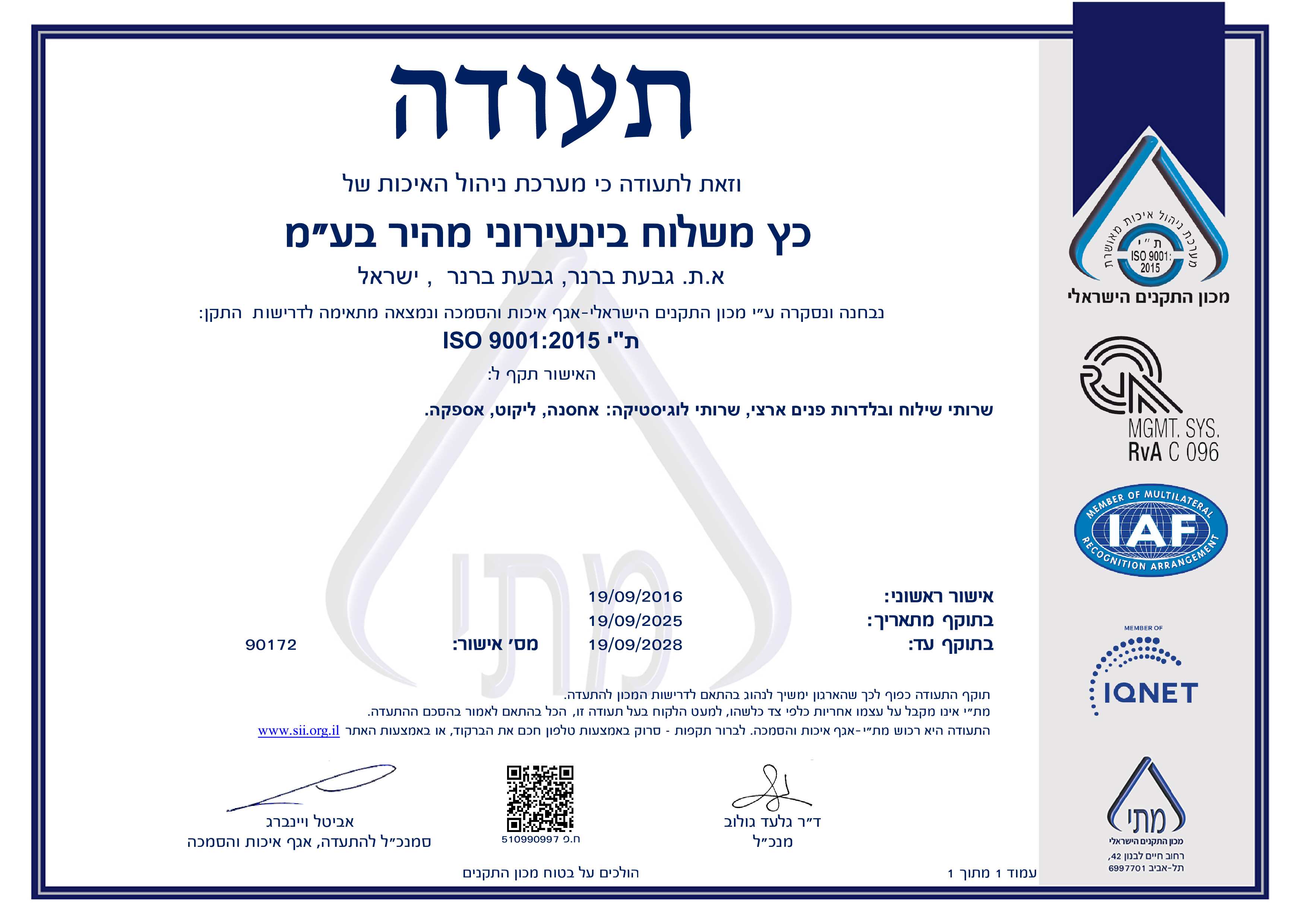 החברה המובילה בישראל במתן פתרונות שילוח ולוגיסטיקה, המעניקה מקצוענות וקדמה, אמינות ונאמנות ללקוחותיה, מתן שירות איכותי ואדיב במחיר הגון.